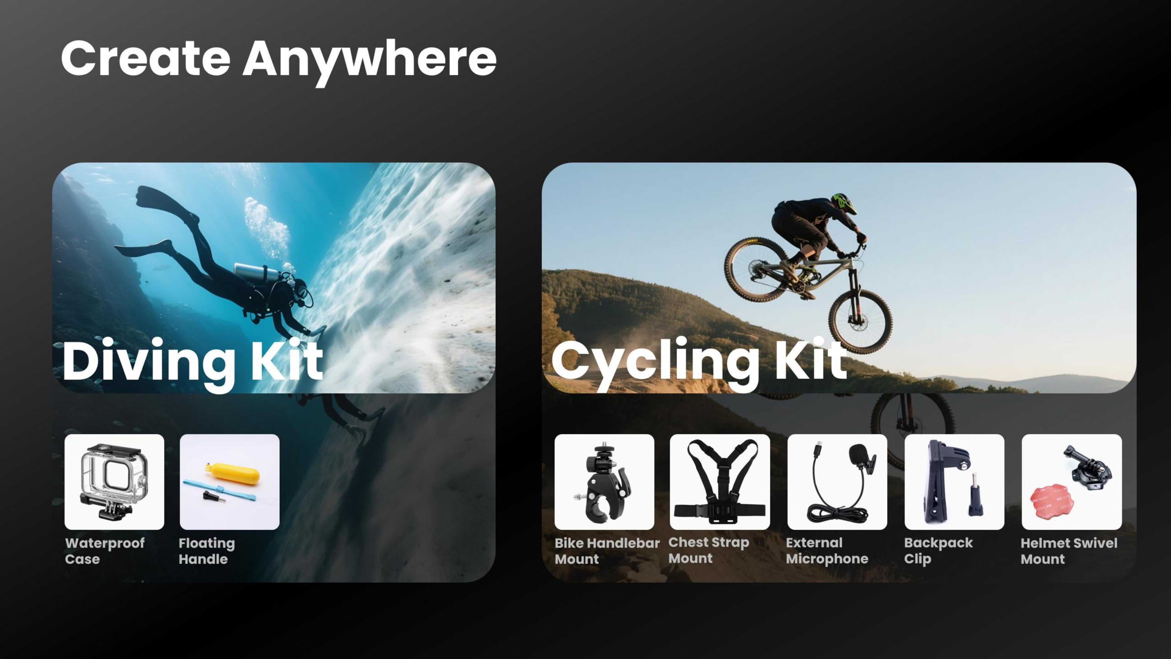 あらゆる冒険を驚くほど詳細に記録 スリルを求める人、旅行者、そして日常のクリエイターのために設計されたアクションカメラのコレクションをご覧ください。海に飛び込む時も、スキー場を滑る時も、日々のVlogを撮影する時も、当社のカメラは鮮明な4K/HD動画、超広角、そして高度な手ブレ補正機能で、あらゆる瞬間を鮮明かつ安定した映像で捉えます。 あらゆる環境に対応できるよう設計されたこれらのカメラは、防水性、耐衝撃性、そして軽量性を備えており、アウトドアアドベンチャー、スポーツ、旅行に最適なパートナーです。Wi -Fi接続、長持ちバッテリー、そして簡単な取り付けオプションなどの機能により、決定的瞬間を逃すことはありません。 最新のアクション カメラ テクノロジーでストーリーテリングをアップグレードし、これまでにない体験を現実のものにしましょう。